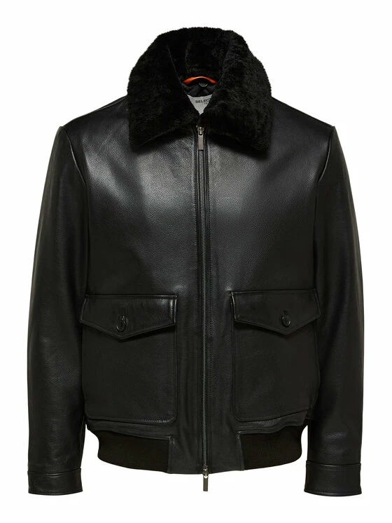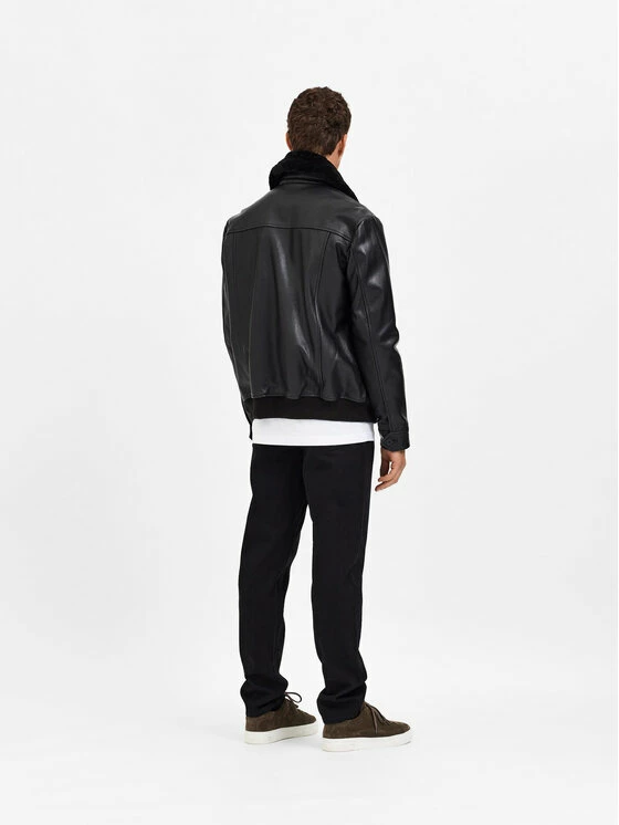 Συμφωνίες ✨ Selected Homme Άνδρες Δερμάτινα Μπουφάν Μπουφάν δερμάτινο Harris 16086879 Μαύρο Regular Fit 😀