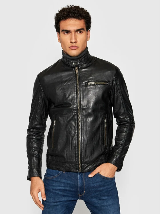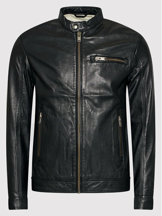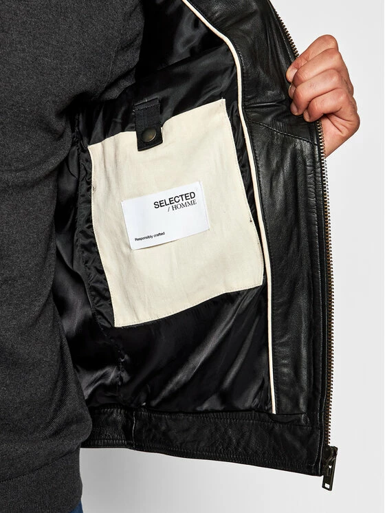 ΧΟΝΔΡΙΚΟ ΕΜΠΟΡΙΟ ⭐ Selected Homme Άνδρες Δερμάτινα Μπουφάν Μπουφάν δερμάτινο Iconic 16077540 Μαύρο Regular Fit 👏