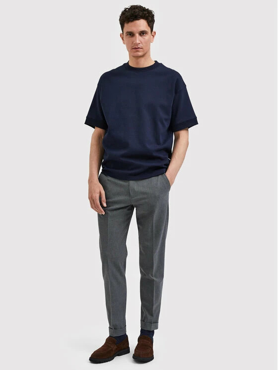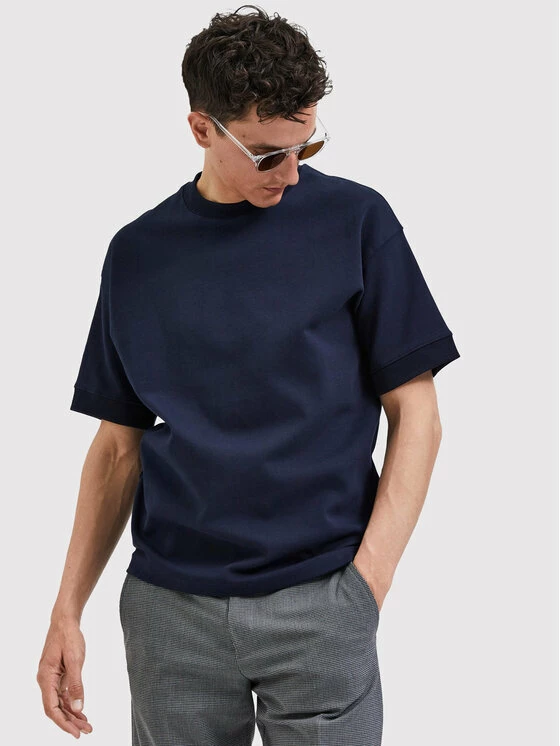 Ολοκαίνουργιο 👏 Selected Homme Άνδρες T-shirts T-Shirt Corton 16085663 Σκούρο μπλε Oversize 👏