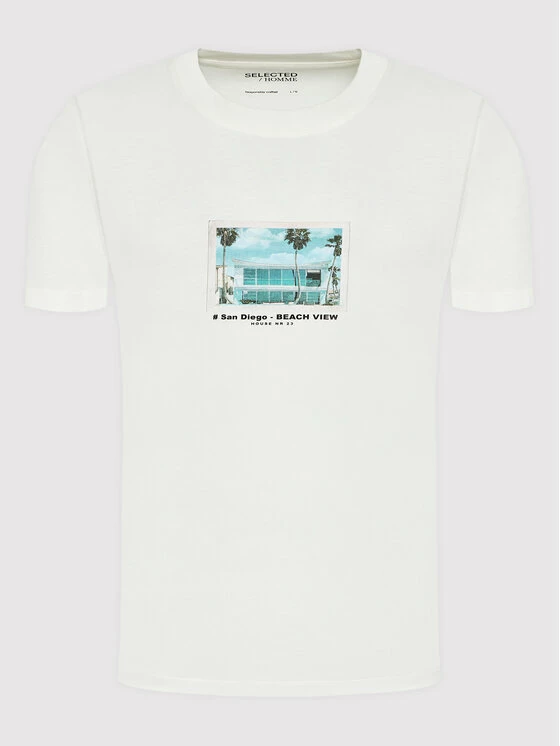 Συμφωνίες 🔥 Selected Homme Άνδρες T-shirts T-Shirt Denton 16083430 Λευκό Relaxed Fit 💯